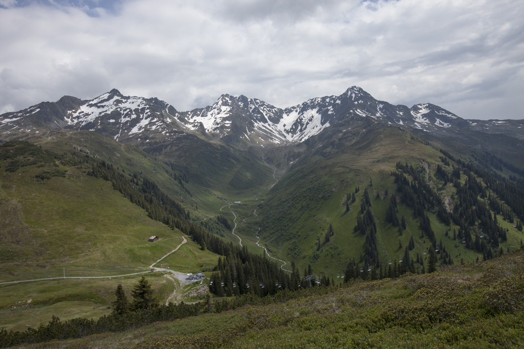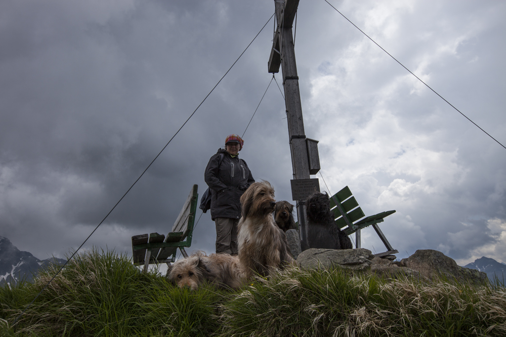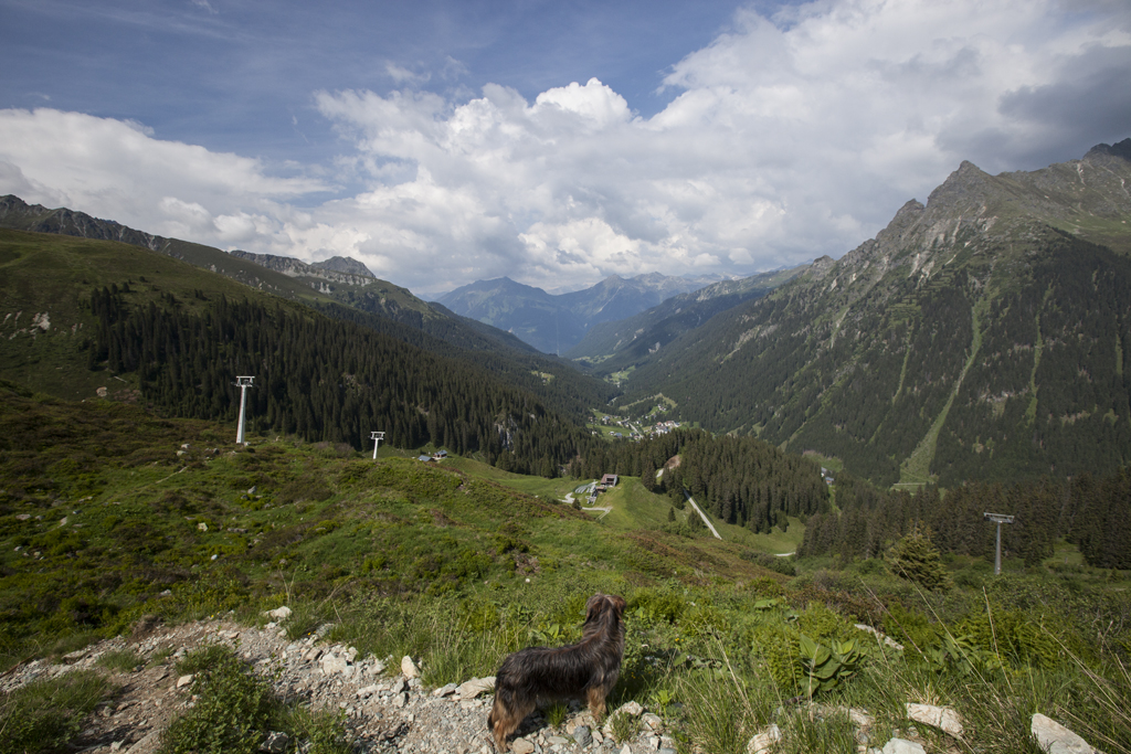 Am dritten Tag sollte es eine gemütliche Bergtour werden. Wir fuhren ins "Silbertal" und von da mit der "Kristbergbahn" auf den Berg. Unsere 4 Hunde durften problemlos mit, die Bahn wurde dann eben nicht so eng belegt - was uns natürlich freute. Von der Bergstation aus ging es auf den Gipfel des "Muttjöchle" auf 2074 m. Nach insgesamt 8 Std. wandern kamen Mensch und Hund zufrieden und erschöpft im Tal wieder an.